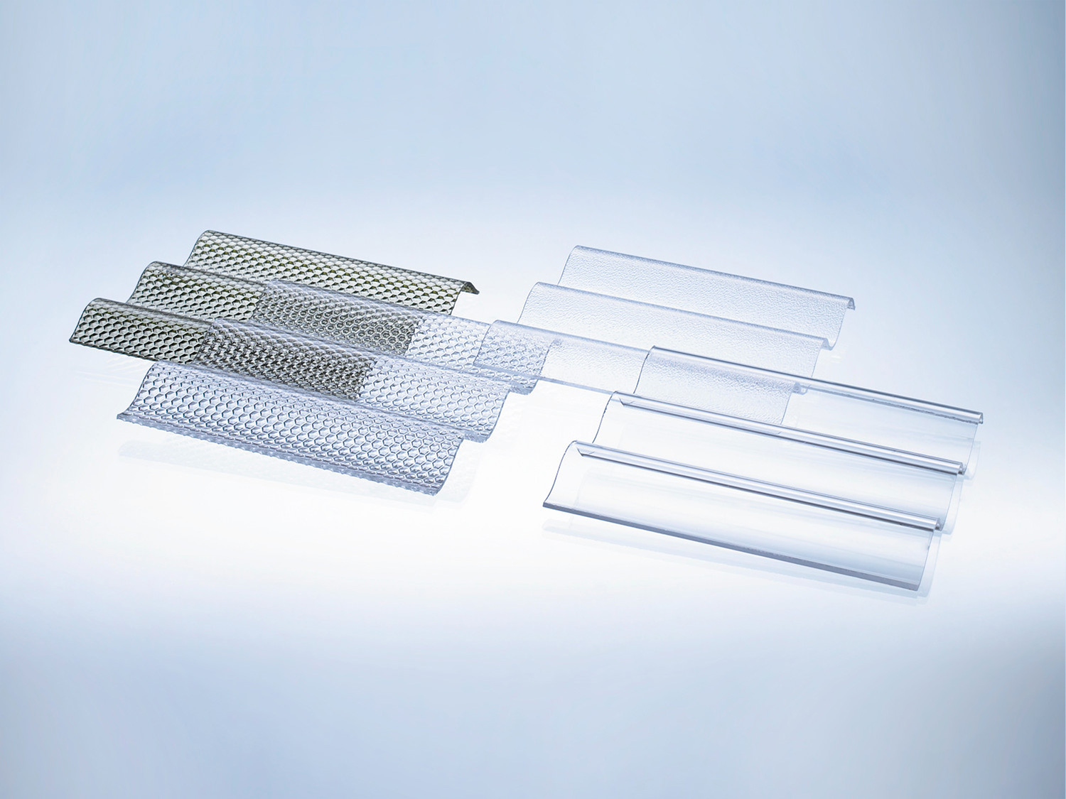 Besonders gefragt ist die Ausführung in Farblos mit Wabenstruktur – sie kombiniert hohe Lichtdurchlässigkeit (ca. 90 %) mit einer angenehmen Lichtstreuung. So entsteht ein blendfreies, natürliches Licht, ideal für überdachte Sitzplätze, Lounges und Balkone.
